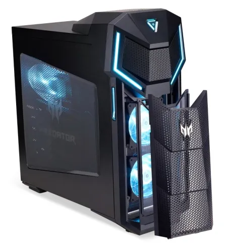 Dois ventiladores com engenharia personalizada Predator FrostBlade lidam com a entrada e a saída de ar para manter as temperaturas baixas, enquanto as luzes dos ventiladores e as barras de luzes verticais na frente do gabinete podem ser personalizadas com efeitos especiais e até 16,7 milhões de cores por meio do software PredatorSense.