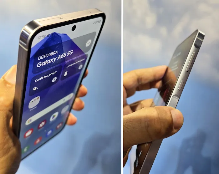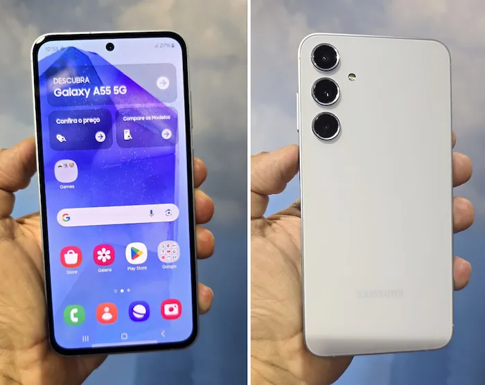 Por outro lado, o modelo Galaxy A55 5G vem com 8 GB de RAM e opções de 128 GB ou 256 GB de armazenamento interno, com preços começando em R$ 2.999. Mas também já pode ser encontrado por preços menores na loja online da Amazon:
