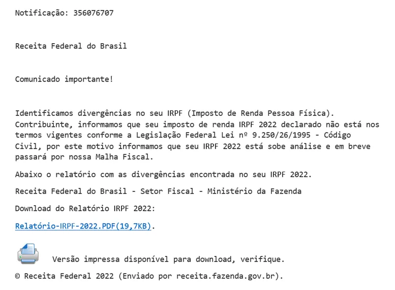 Empresa de cibersegurança descobre golpe do IRPF que usa como isca supostos problemas na declaração e Receita informa que não envia mensagens com links. Veja como se proteger