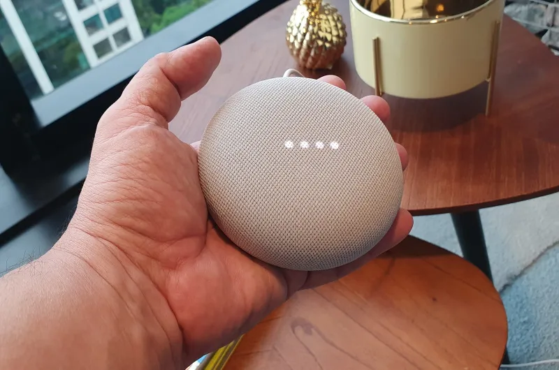 Outro avanço é a presença de luzes de LED na extremidade do Nest Mini, que se acendem quando a mão do usuário se aproxima do dispositivo, indicando onde tocar para ajustar o volume.