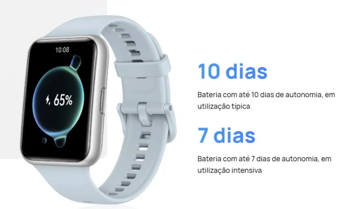 A série Watch Fit, da Huawei, incentiva os usuários a explorarem novos tipos de exercícios por meio de uma variedade de cursos animados de condicionamento físico, modos de treino e rastreamento de bem-estar. Tem um design elegante além de ser muito leve e inaugura uma nova era de smartwatches, estimulando os usuários a alcançarem rotinas mais saudáveis, tudo isso em um dispositivo cheio de recursos úteis com até 10 dias de bateria dependendo do uso.