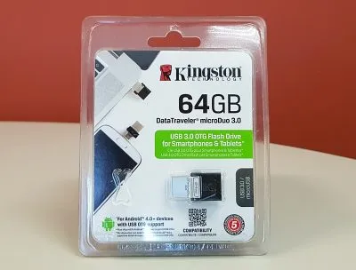 O DataTraveler microDuo 3.0, da Kingston, é um produto interessante por ser bem pequeno e assim de fácil transporte. Você pode utiliza-lo como backup de seus arquivos do smartphone e também para transferir arquivos para um PC sem usar cabo. no melhor caso, para transferir arquivos grandes ou uma massa de arquivos para outro smartphone, já que também tem o conector micro USB.