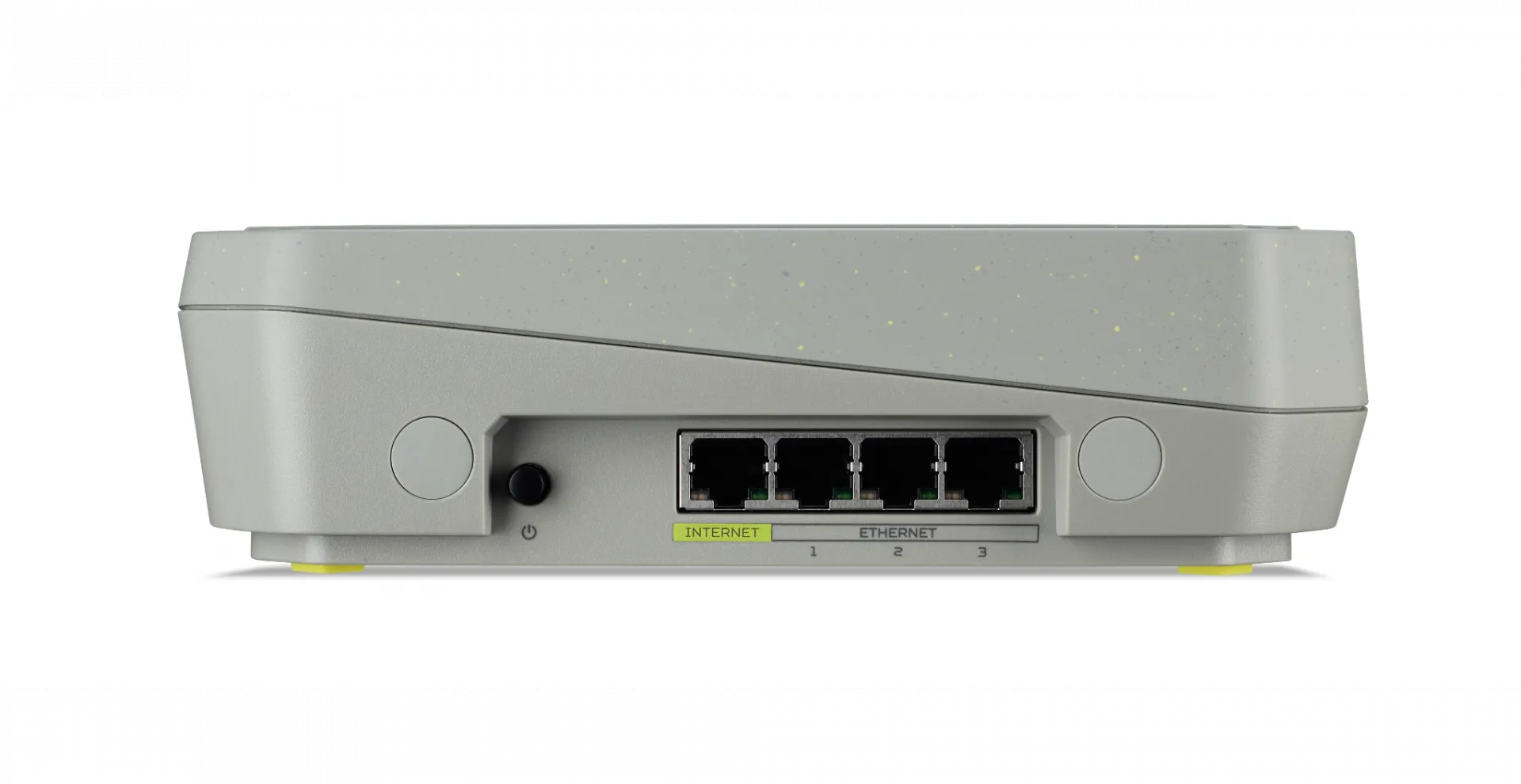 O Acer Connect Vero W6m, tem design minimalista e é compacto compacta, feito com 30% de plástico PCR e pintado com um acabamento cinza pedra para se adaptar a qualquer casa ou escritório. O modo Eco dedicado otimiza o consumo de energia do roteador, juntamente a outros dispositivos conectados, gerenciando o tempo de suspensão, quando não em uso, e regulando eficientemente sua transferência de dados.