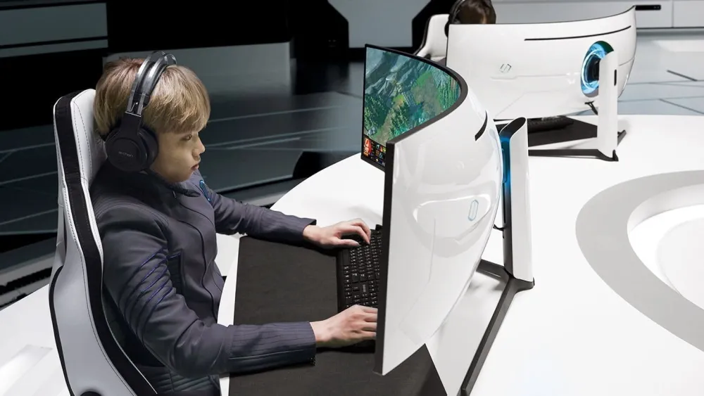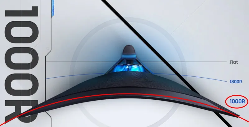 Para monitores ultra wide, a curvatura R1000 fornece mais conforto visual e imersão