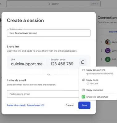 Entre as novidades, o processo de conexão foi simplificado. Anteriormente, as conexões do TeamViewer eram baseadas apenas na troca de IDs e senhas. Na versão Remote, ambas as partes entram em uma sessão de suporte semelhante a uma reunião online. Mesmo assim, para quem gostava do método anterior, pode ficar tranquilo, pois também existe a opção de acesso com nome de usuário e senha em um menu separado.