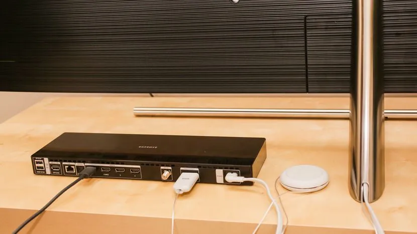 Este cabo é conectado no One Connect, um hub com várias entradas, onde não é mais necessário cabos pendurados na TV.