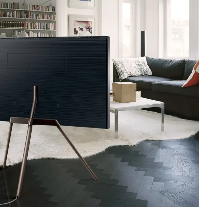 O design também é um diferencial. Esta TV é instalada com espaço mínimo da parede por um suporte chamado “No Gap”. Ela também tem molduras que serão vendidas separadamente e em três opções de cores: madeira, madeira clara e madeira branca.